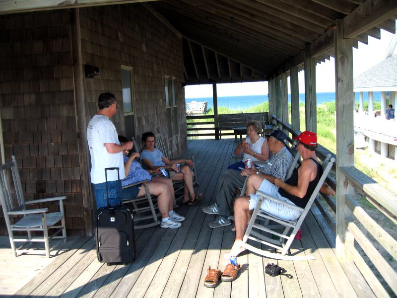 Perry, Mom, and Tom enjoying the pleasant night air. |