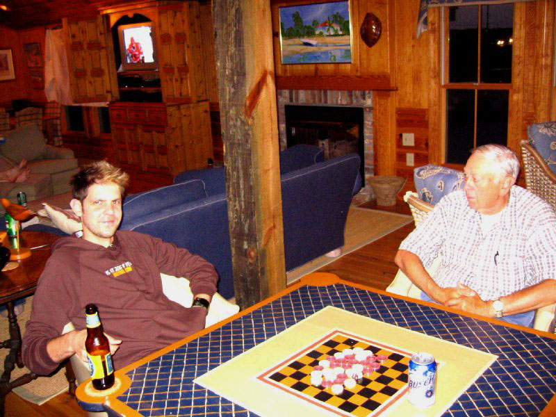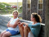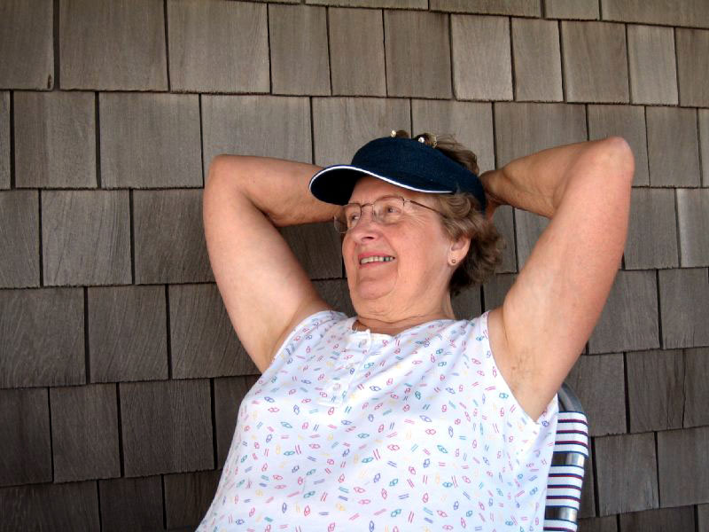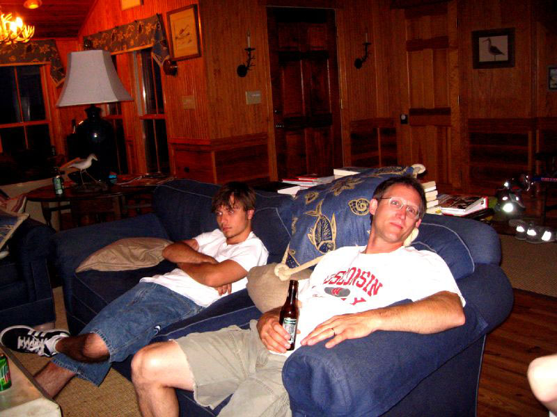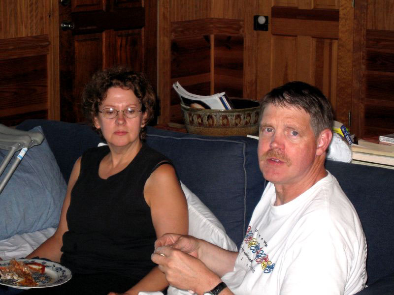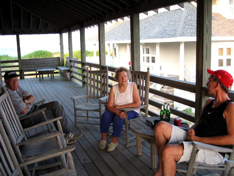 Dad, Mom, and Tom, enjoying the warm air (and a beer or
