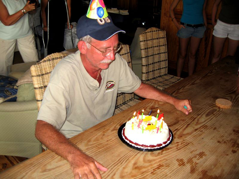 Tom and his birthday cake on his LVth birthday---you figure it out! |